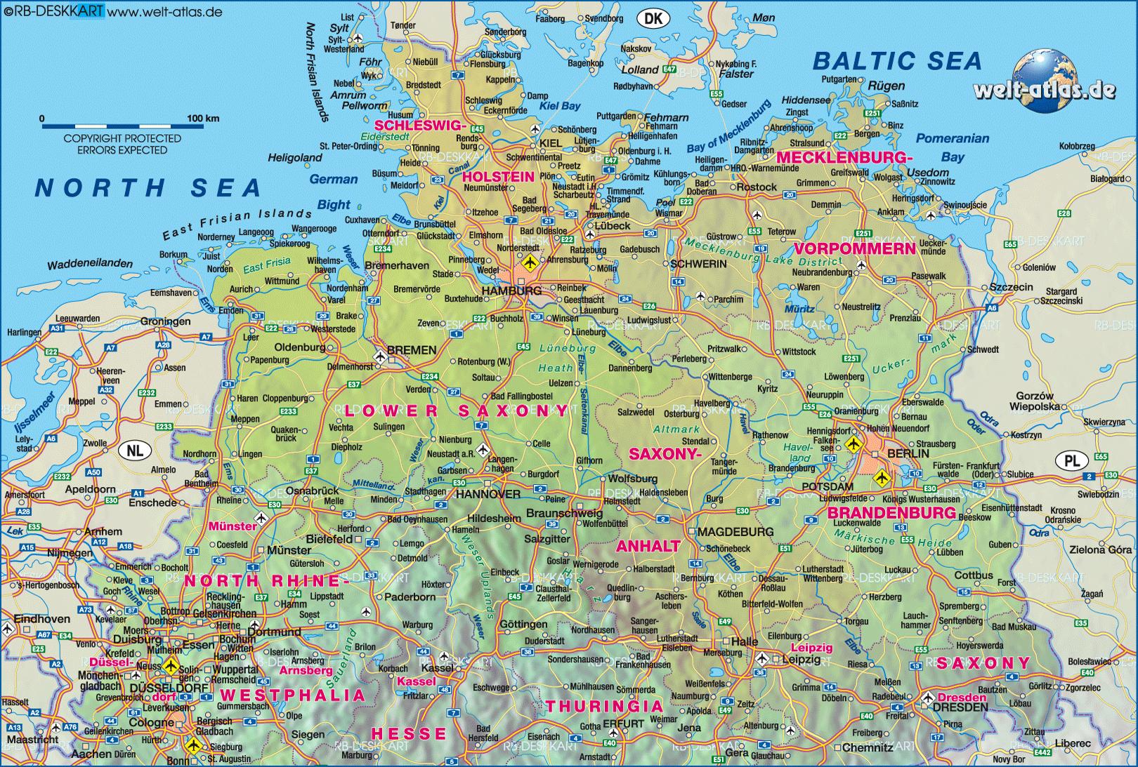 Map of Germany north. North Germany map (Western Europe - Europe) to print. North Germany map (Western Europe - Europe) to download. North Germany attracts tourists with its amazing diversity. You have futuristic cities with rich history, like Berlin and Hamburg. A short drive from the bustle of the cities, you can find yourself in dreamy white sand and turquoise waters. Moreover, North Germany hosts a multitude of beautifully preserved historic towns. Whether you are going for a day or a month, Germany capital city is going to captivate you with its sheer diversity. Berlin as its shown in north Germany map, the cultural and intellectual hub of Germany has art and history lurking around every corner, including a series of Second World War memorials, amazing museums of art. Schwerin is a stunning city punctuated by a large number of lakes. The most famous sight in Schwerin, and a good enough reason to make a trip to the city, has to be the romantic Schwerin Palace.